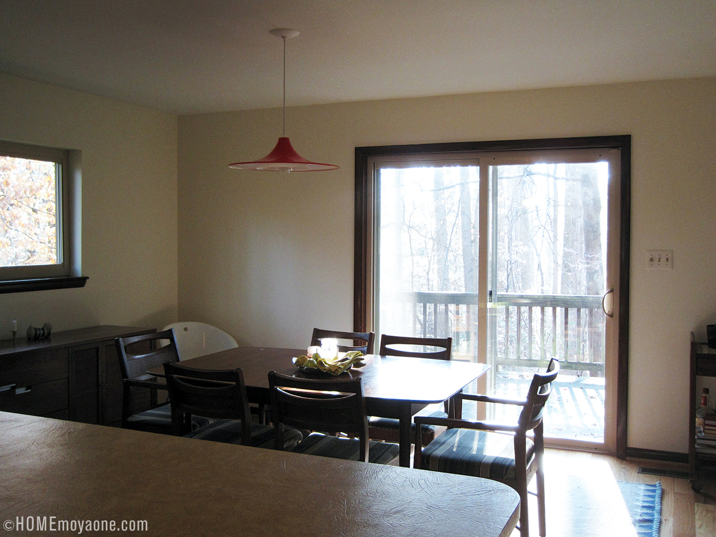 Remember this photo from our quickie kitchen demolition? Remember the awful chandelier in the background?