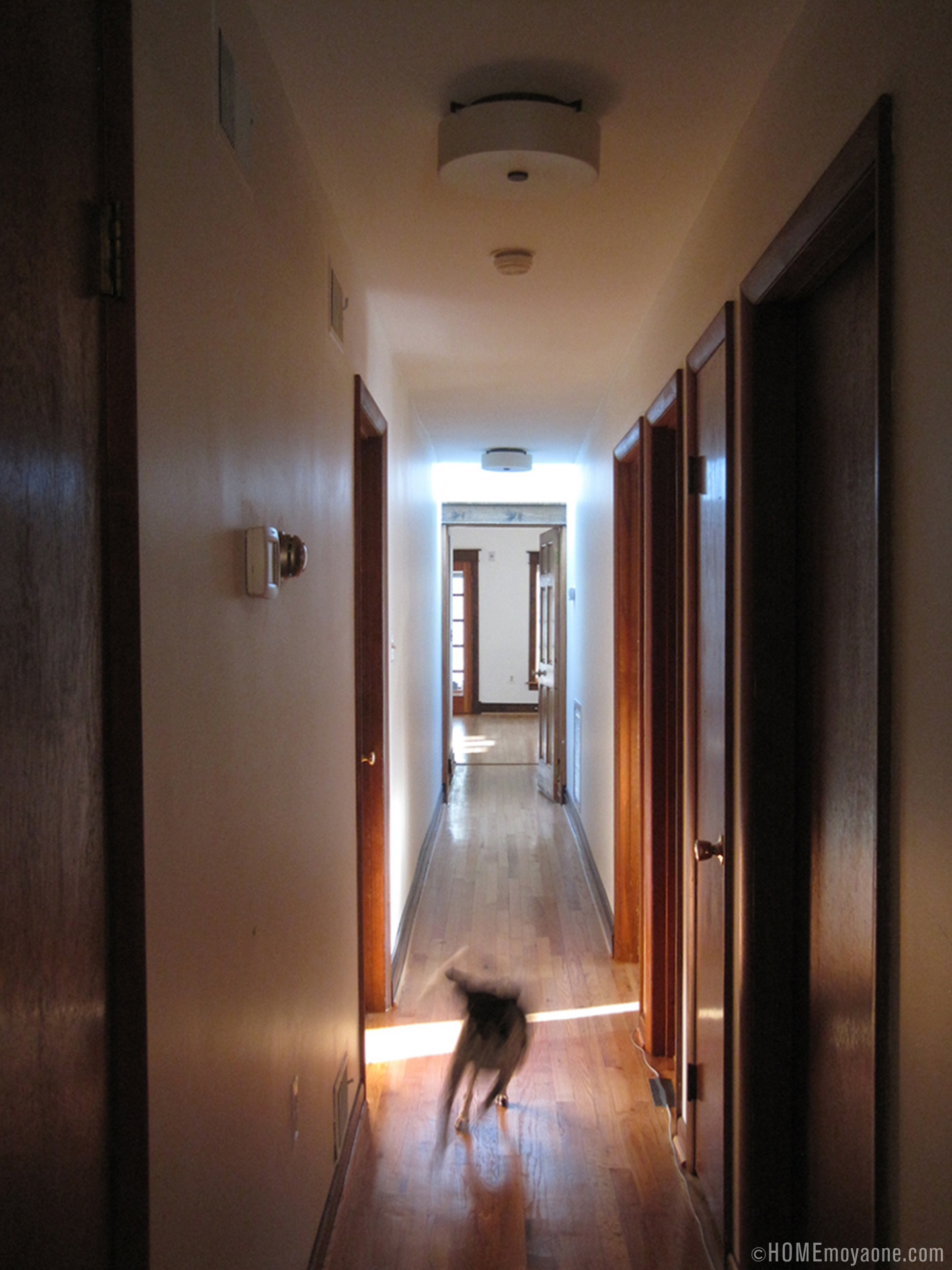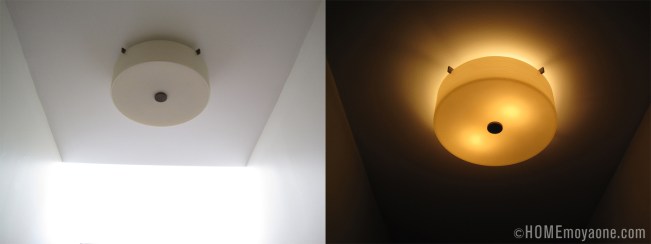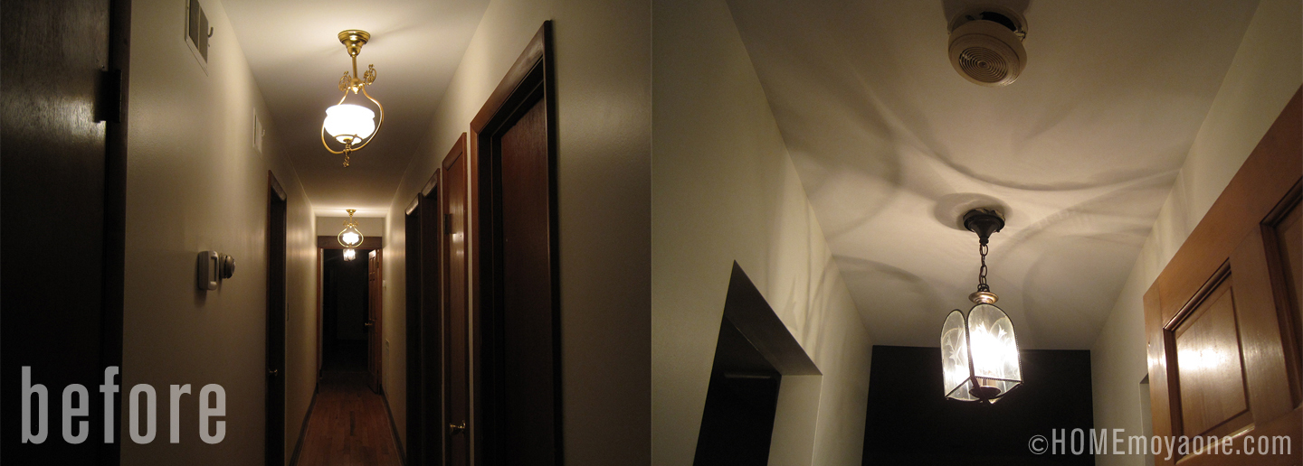 We only replaced the two fixtures in the main section of the hallway. There was a third fixture—different than the other two, not only ugly but superfluous—by the entrance to our bedroom that we just removed and capped off. Goodbye ugly things…