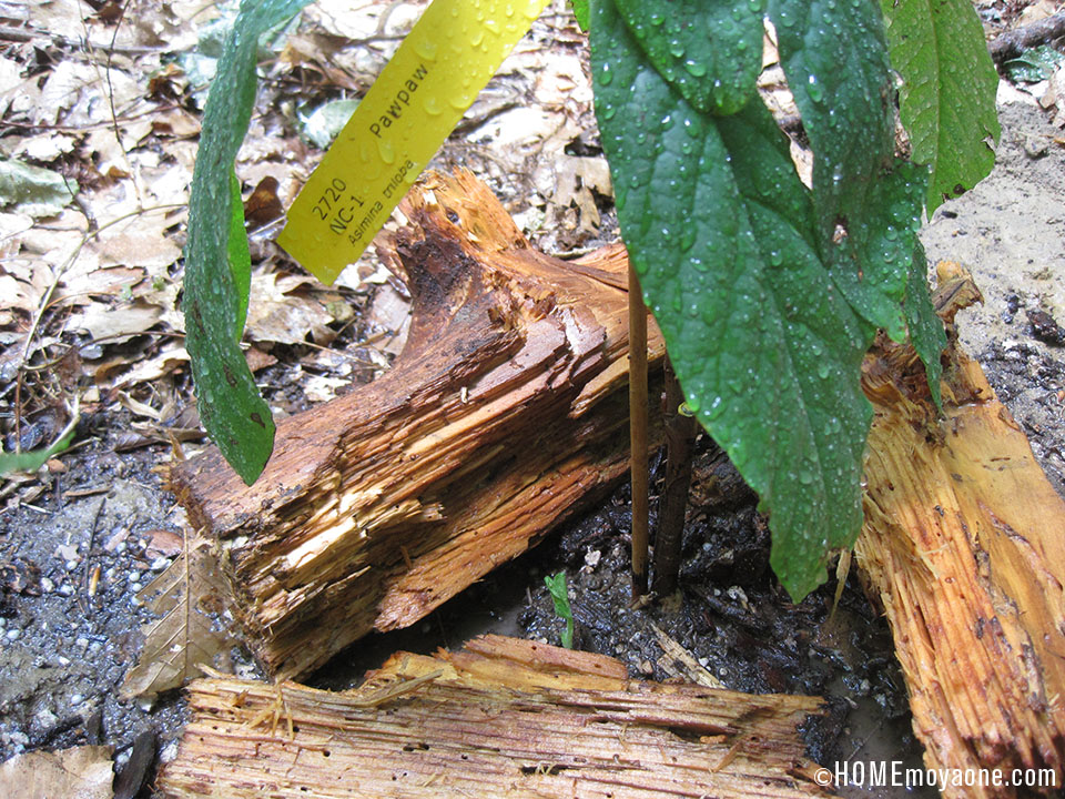 We planted the new paw paws on the North side of the house, behind the previous fruit tree planting-palooza fenced-in “orchard.” We’ve already planted the orchard as densely as possible so we had to move beyond the confines of the fence. The deer don’t bother paw paw trees so in that regard the trees are okay out there, but eventually we will move the fence out further and put in some foot paths and make our magical edible forest fantasy a reality. These things take time.