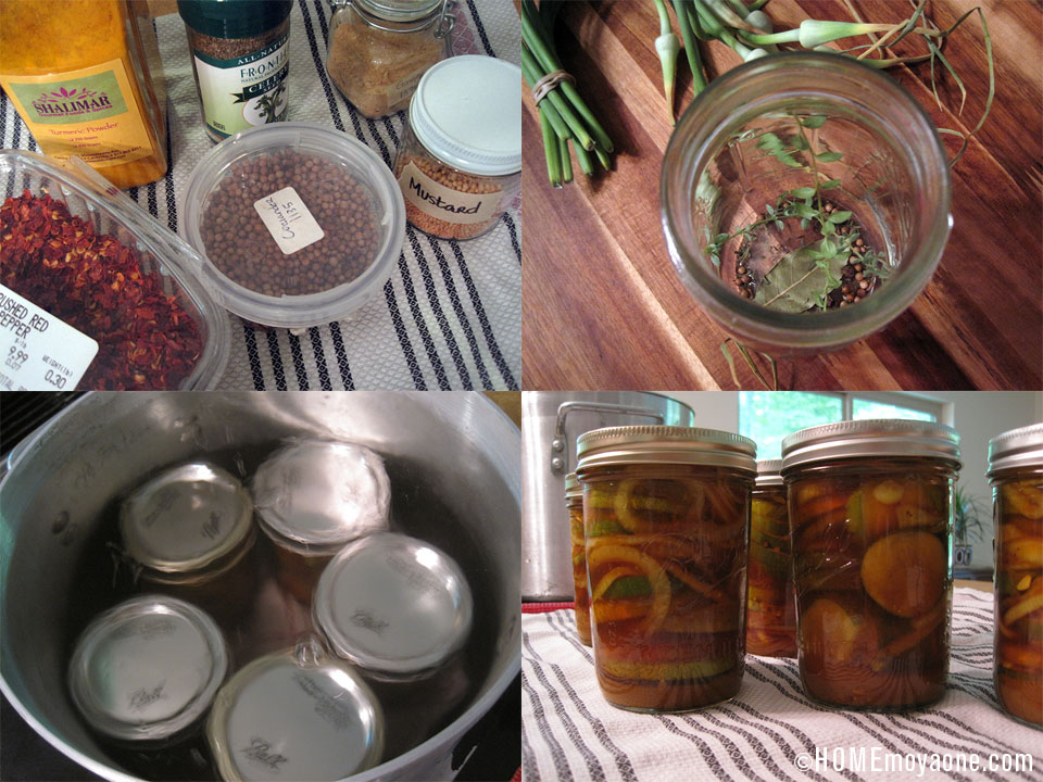 I also tried the “Sunshine Pickles” recipe from the Saving the Season book. Pack cucumbers and dill into a crock, cover with rye bread and fill with salt water, put out in the sun for a few days, and then—pickles. Super easy, and time for me to check on them!